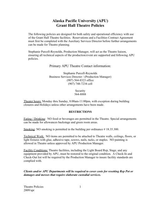 Alaska Pacific University Apu Grant Hall Theatre Policies