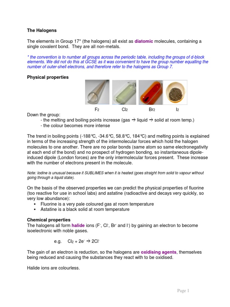 Group 7 Halogens Fluorine Chlorine Bromine Iodine Physical