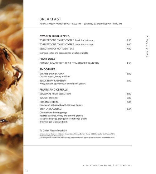 Room Service Menu Hyatt Regency Monterey Hotel And Spa
