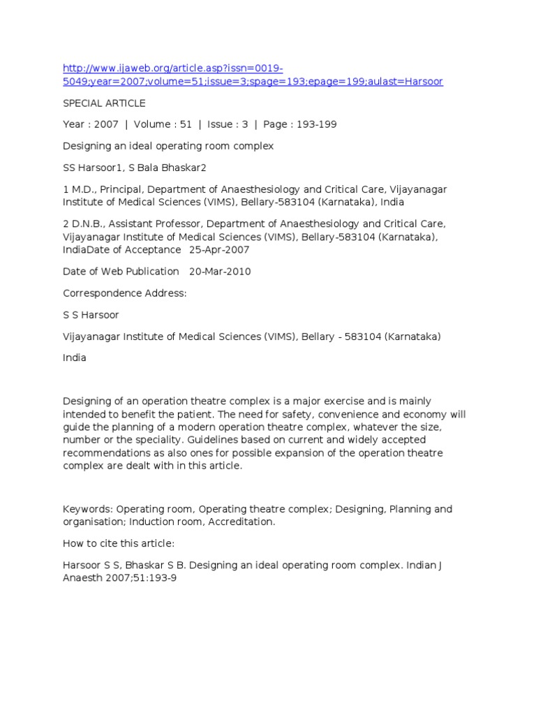 Designing of an operation theatre complex is a major exercise and is mainly intended to benefit the patient.