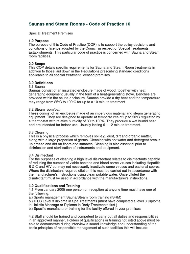 Saunas and steam rooms code of practice 10 special treatment premises.