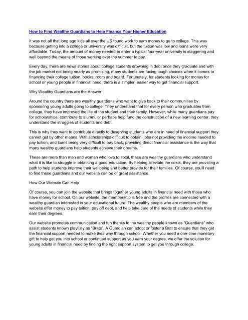 How To Find Wealthy Guardians To Help Finance Your Higher